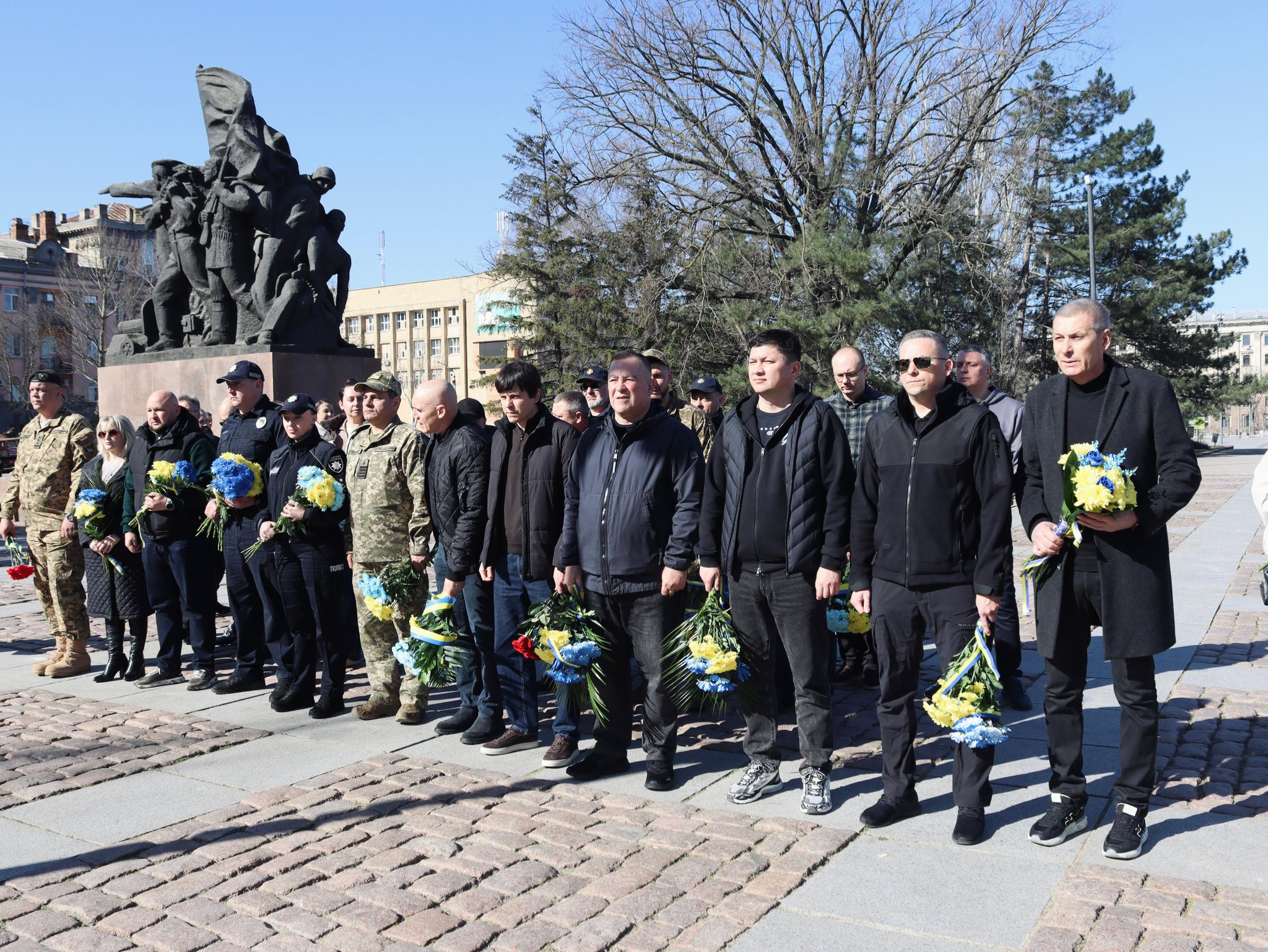 Квіти до Меморіалу пам’яті за загиблими захисниками України поклали начальник Миколаївської ОВА Віталій Кім та його заступник Юрій Гранатуров, депутат Миколаївської обласної ради Ігор Мухарський, міський голова Миколаєва Олександр Сєнкевич, начальниця обласного управління культури Олена Буберенко, представники силових структур та громадськості.