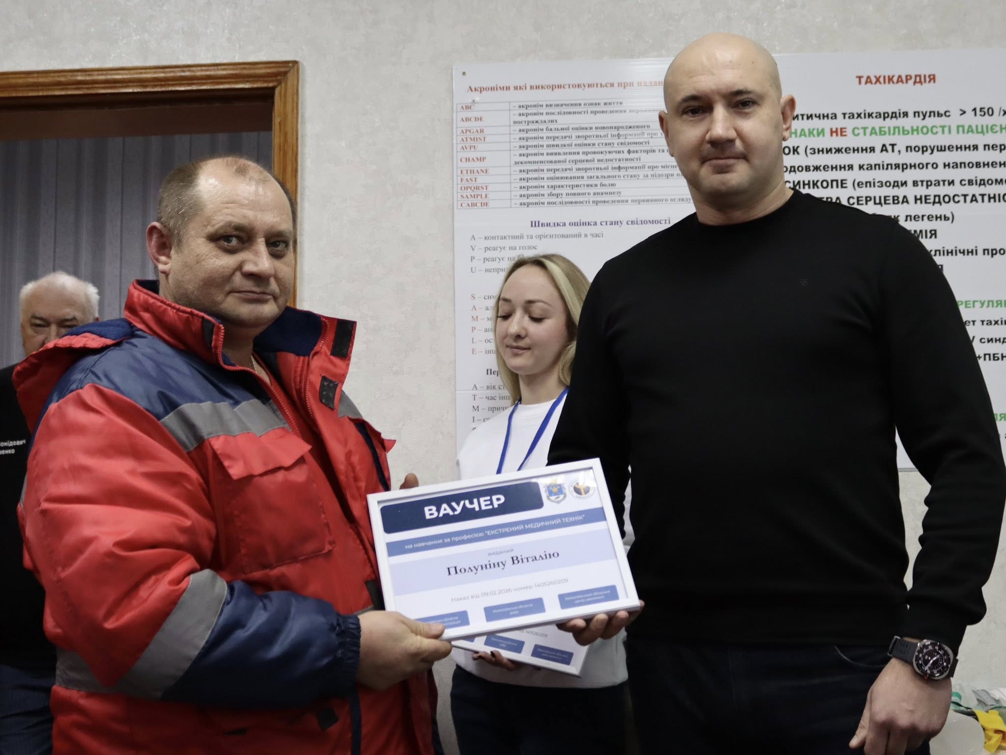 У четвер, 12 лютого, ваучери на навчання за професією «Екстрений медичний технік» отримала перша група водіїв із 13 осіб, які працюють в КНП «Миколаївський обласний центр екстреної медичної допомоги та медицини катастроф» Миколаївської обласної ради. Фінансування навчання вартістю 6,5 тис. грн здійснює Фонд загальнообов'язкового державного соціального страхування на випадок безробіття.